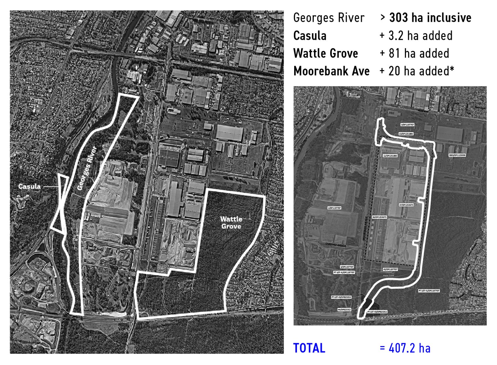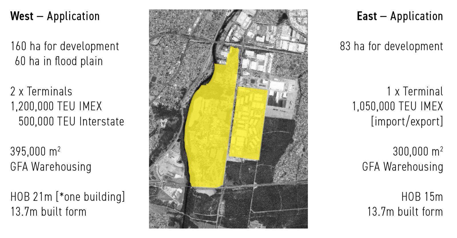 To recap on the past three segments recall that (a) an intermodal at Moorebank was shoehorned into federal policy in 2004 and thus made de facto NSW policy in 2005 (b) but the first Environmental Overviews for each project were not produced until 2010 (East) 13 and 2011 (West) 14 (c) and that evidence-based assessments in Environmental Impact Statements were submitted in 2012 (East) 15 and 2013 (West) 16 over a decade later after policy announcements. Resulting in not one but two competing intermodal projects (Eastern and Western) across the road from each other, slated to cumulatively consume over 300 ha of Georges Riverfront as shown in the images below.