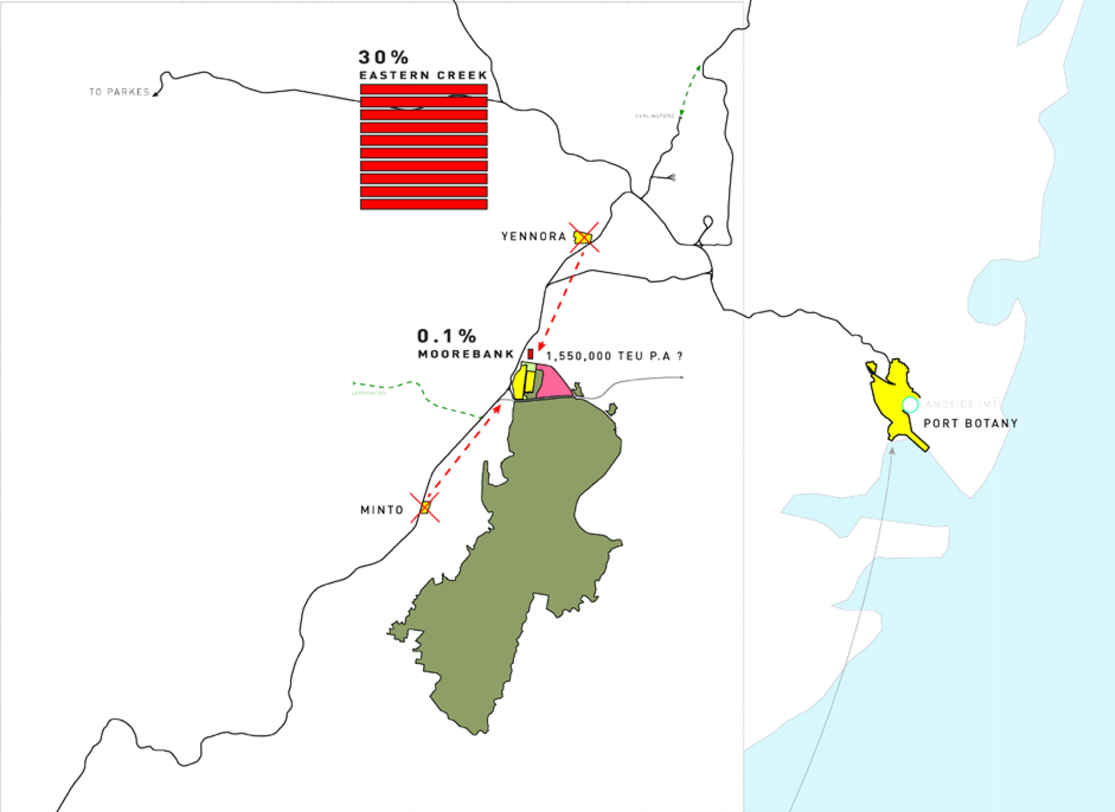 “There is no public evidence […] of any kind of due diligence, any kind of independent study or assessment at any point.” North also specified the political machinations behind the project, accusing both major parties of playing roles in its advancement. “In the main, the Liberal Party acted as kingmakers 3 […] and then you’ve got the Labour Party acting as cock blockers 4, whom later and is presently taking credit for Moorebank, which is an amazing turnaround,” he said. Specifically the 220ha federal intermodal terminal traces back to policies under Kevin Rudd’s government in 2007, with Infrastructure Australia created under Anthony Albanese (then Infrastructure Minister), now Prime Minster.